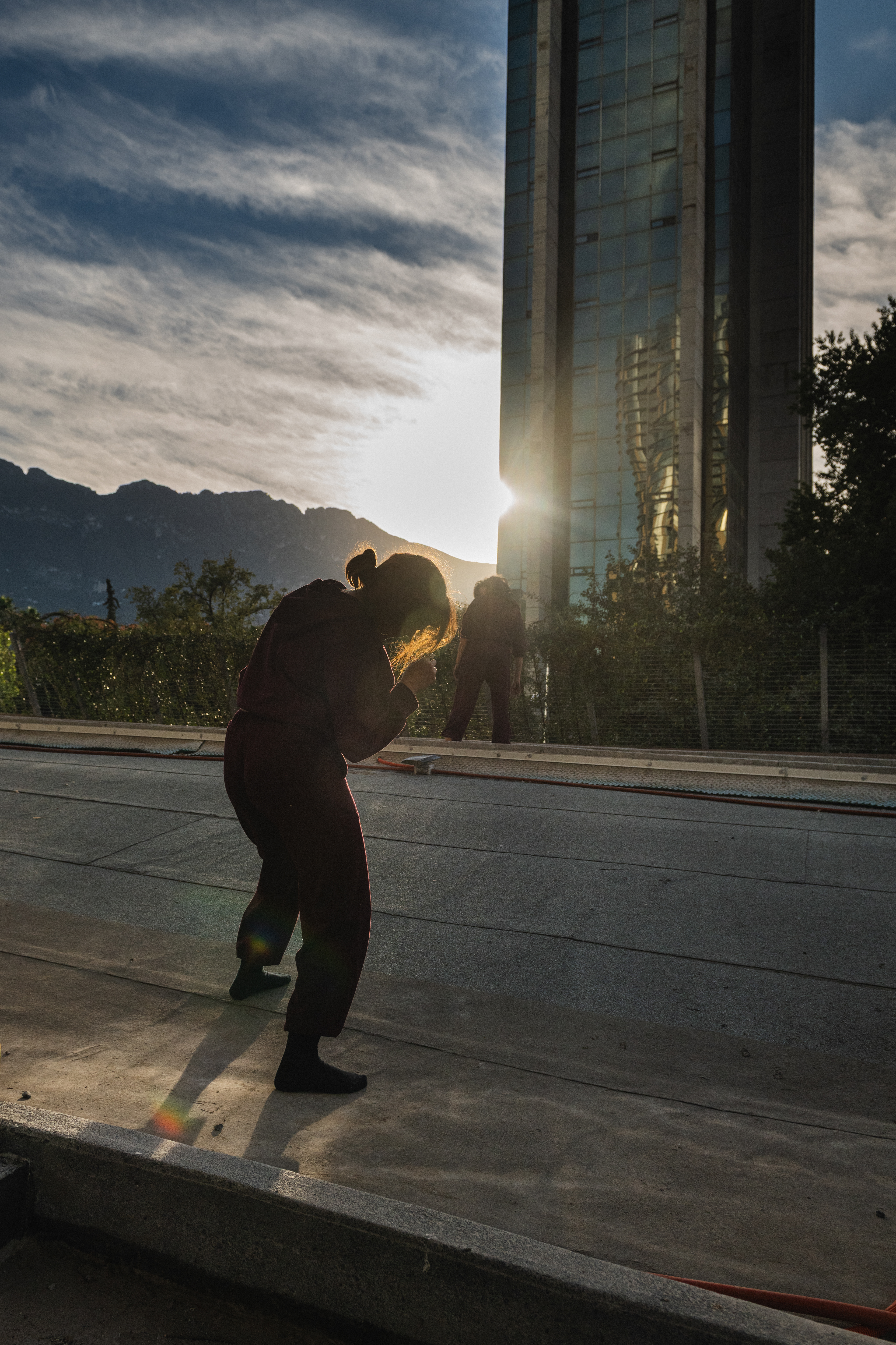 Documentación del performance de movimiento y danza ininterrumpida, donde dos mujeres (Tetei & Gloria) exploran el paso del tiempo y el cansancio a través del cuerpo. Desde la primera luz del día hasta el atardecer, su presencia en movimiento se convierte en una meditación sobre la resistencia y la transformación.