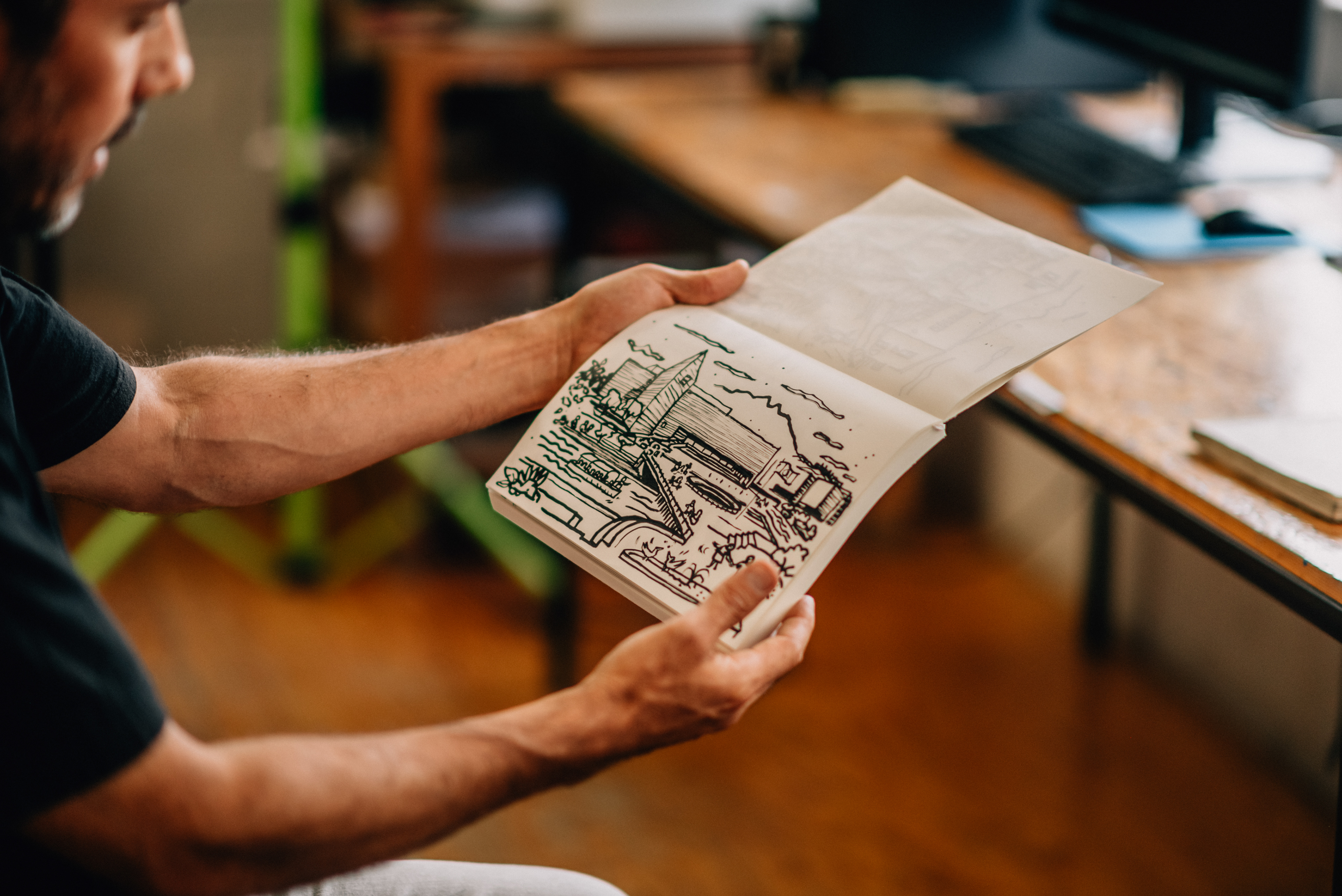 Tomás Güereña - Arquitecto, dibujante, escultor, es el artista detrás de las obras en los edificios de Nido, tiene su taller los originales contratistas.